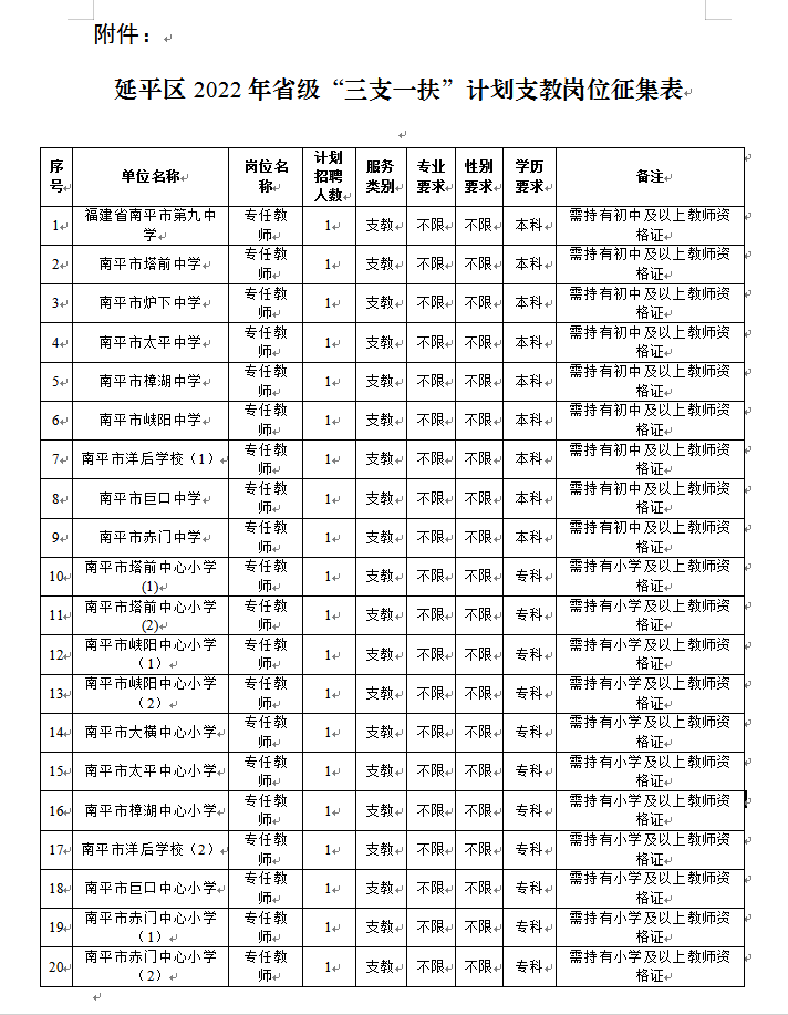 附件:延平区2022年省级“三支一扶”计划支教岗位征集表